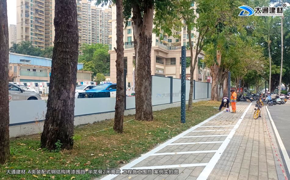 深圳城市建設(shè)城區(qū)改造工程項(xiàng)目選用大通建材2米高裝配式圍擋烤漆A款,具有結(jié)構(gòu)牢固、可抗臺風(fēng)、可回收循環(huán)利用、美觀、環(huán)保等特點(diǎn),是目前業(yè)內(nèi)倍受喜愛的圍擋之一。