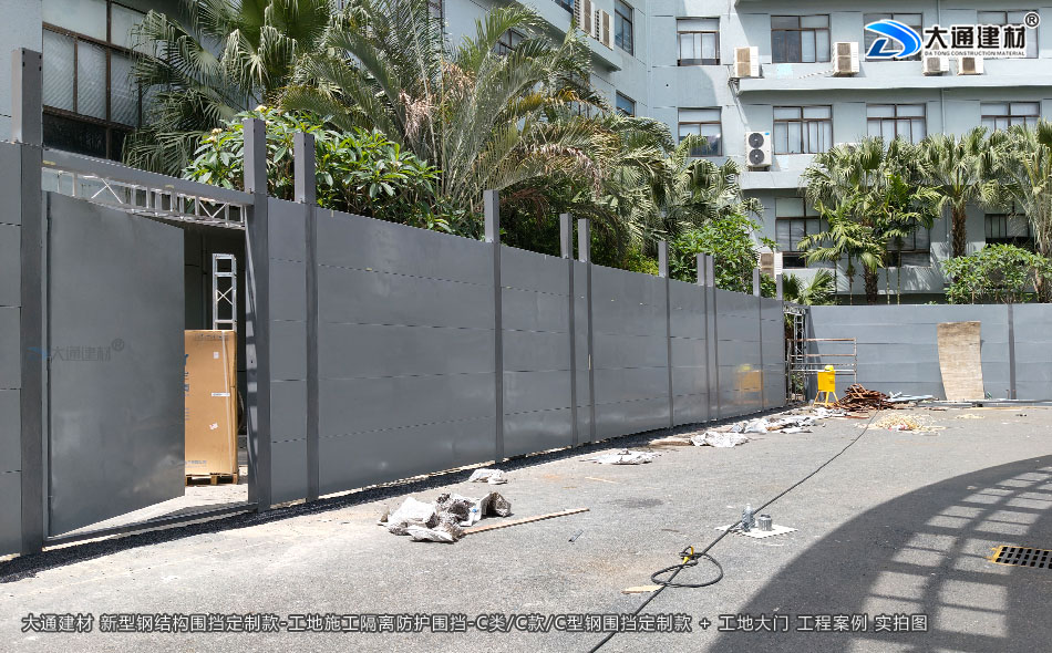 深圳市大通建材有限公司,大格局、通天下! 新型裝配式鋼結(jié)構(gòu)圍擋A款/B款/C款,PVC圍擋,圍擋基礎(chǔ),工地大門等產(chǎn)品生產(chǎn)廠家電話13826562448