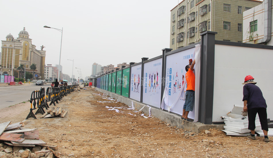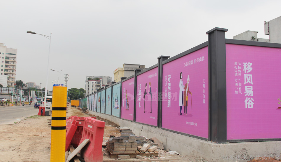 深圳新標(biāo)準(zhǔn)鋼圍擋 安全、綠色、美觀——堅持深圳質(zhì)量,關(guān)注城市美學(xué),培育精益求精的工匠精神,結(jié)合深圳開放、創(chuàng)新、現(xiàn)代、濱海的城市的特征和公益宣傳的要求,在構(gòu)造形式統(tǒng)一的前提下,提供具備不同區(qū)域環(huán)境特點(diǎn)的外觀設(shè)計方案,并通過外觀裝飾使鋼結(jié)構(gòu)式圍擋和砌筑式圍擋形成統(tǒng)一的風(fēng)格;再結(jié)合城市區(qū)域特點(diǎn),分片區(qū)、分道路、分街景各自選用同類風(fēng)格圍擋,在營造美觀、整潔的城市環(huán)境的同時,實(shí)現(xiàn)圍擋風(fēng)格區(qū)域性的協(xié)調(diào)統(tǒng)一。